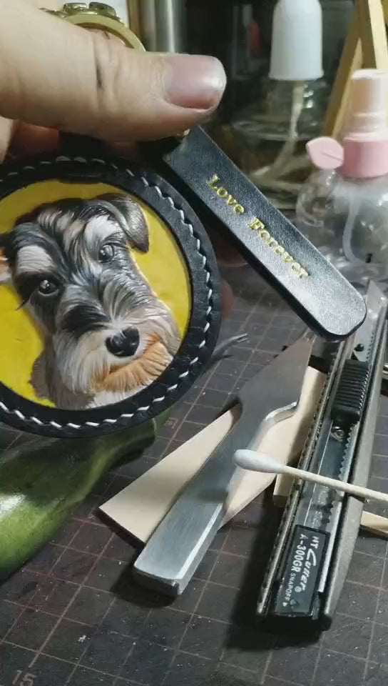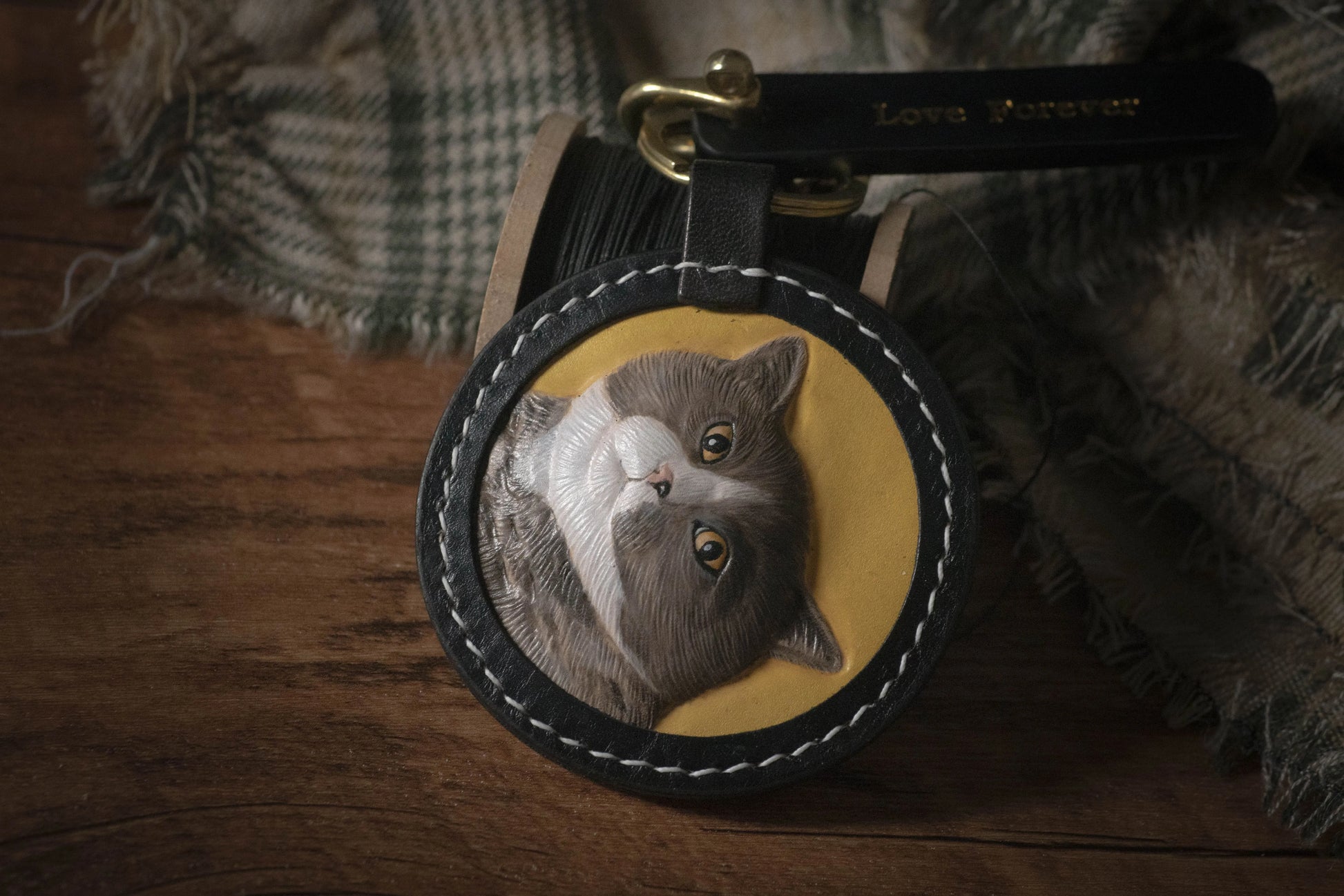 Leatherchild (Double sided)Handcrafted Italian Veg-Tanned Leather Pet Keychain - Gifts & Decorations 【1832】 (custom-made 28-35 days)