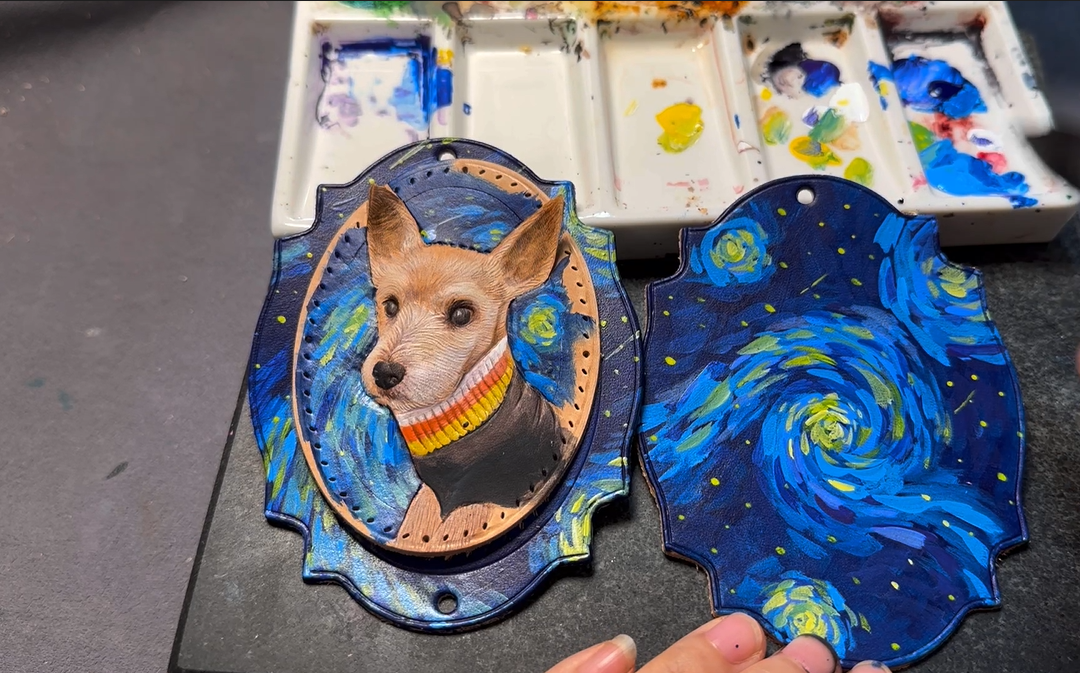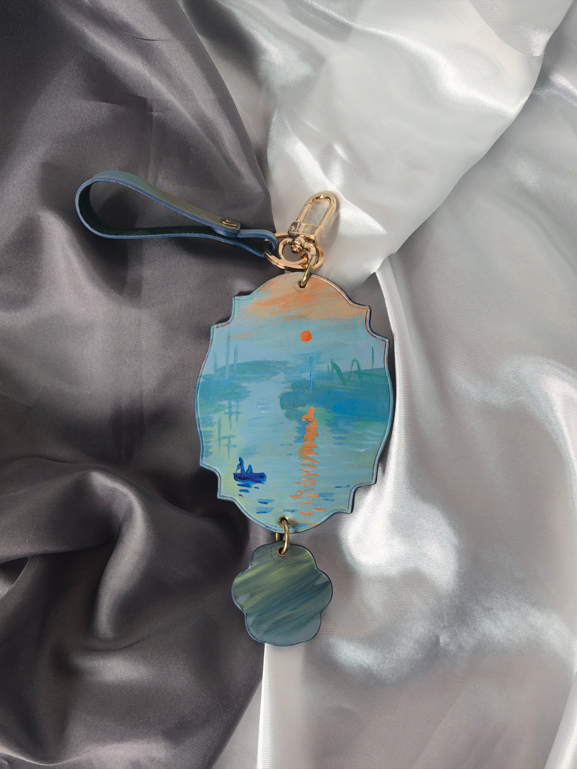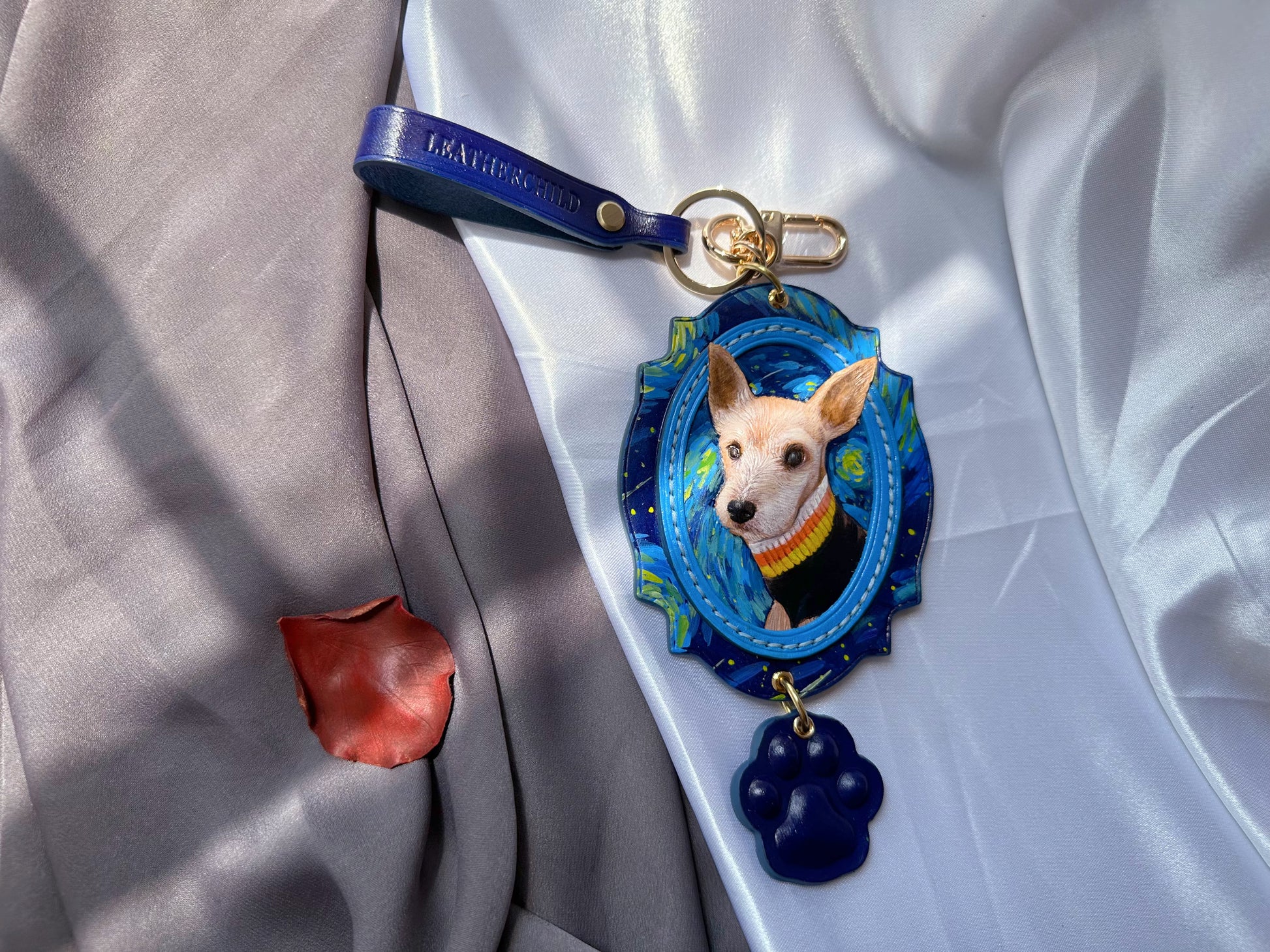 Leatherchild Handcrafted Italian Veg-Tanned Leather Pet Bag Charm & Keychain - Gifts & Decorations | Oil Painting Background (Custom-made 28-35 Days)