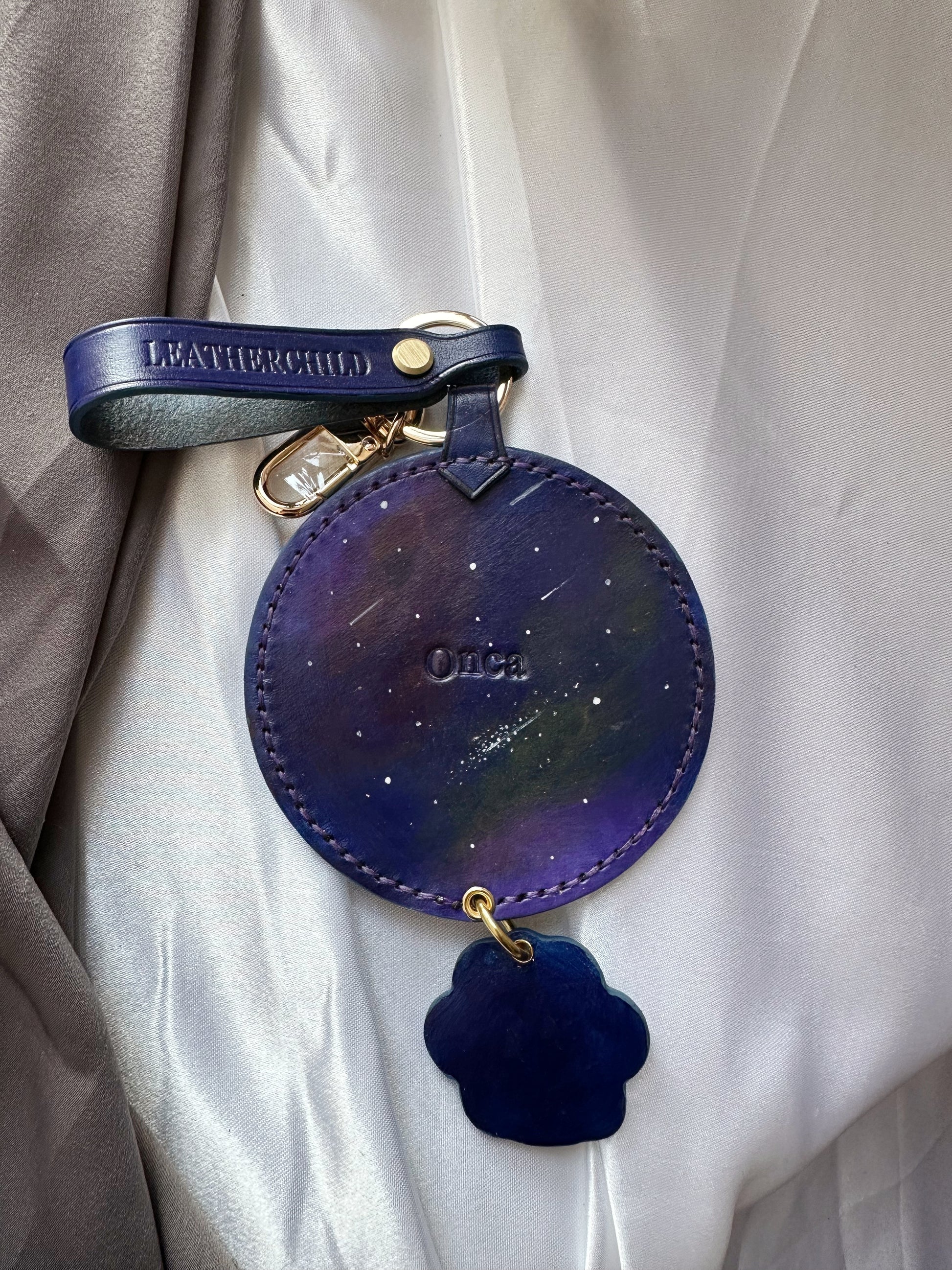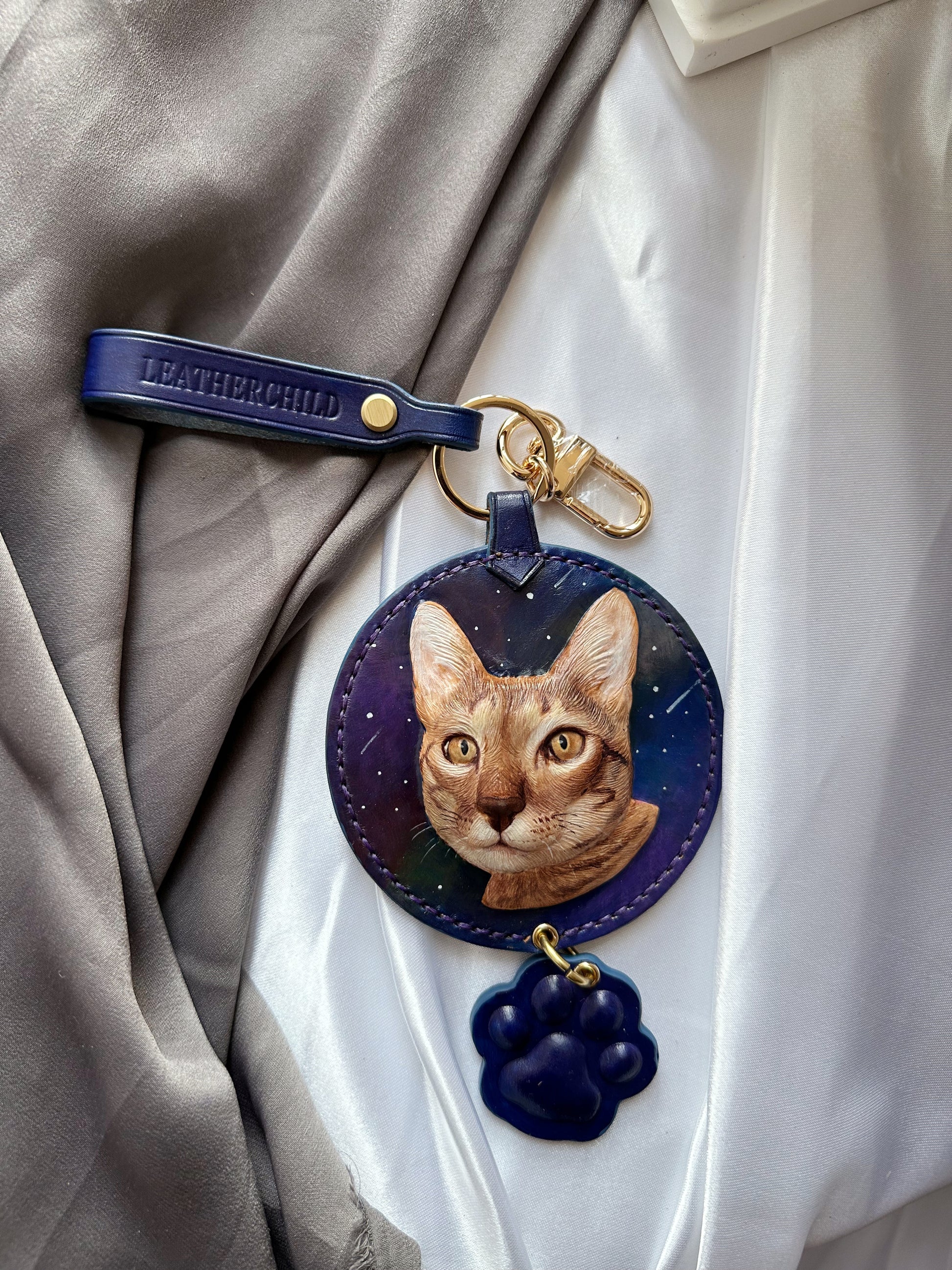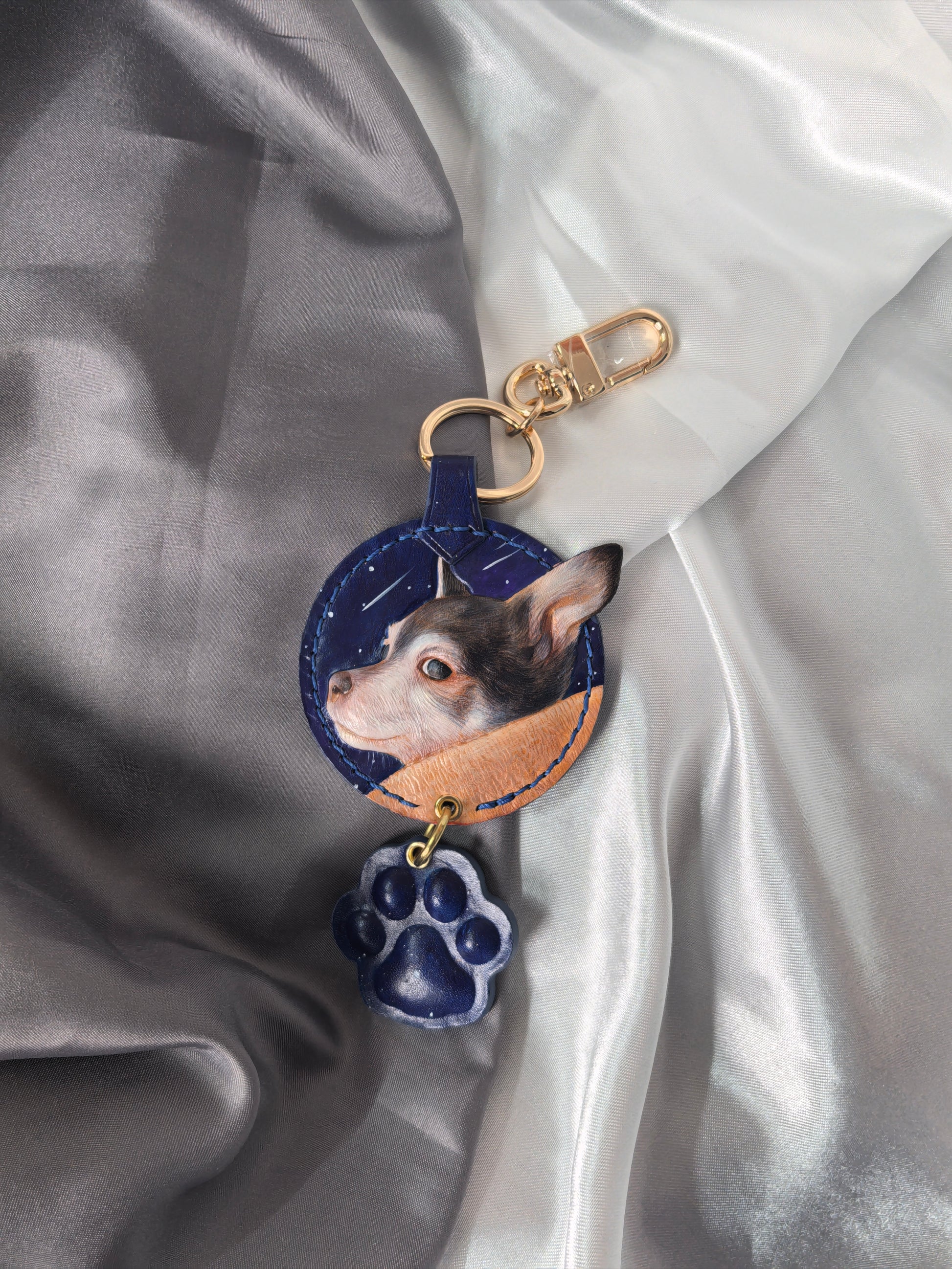 Leatherchild Handcrafted Italian Veg-Tanned Leather Pet Bag Charm & Keychain - Gifts & Decorations | Oil Painting Background (Custom-made 28-35 Days)