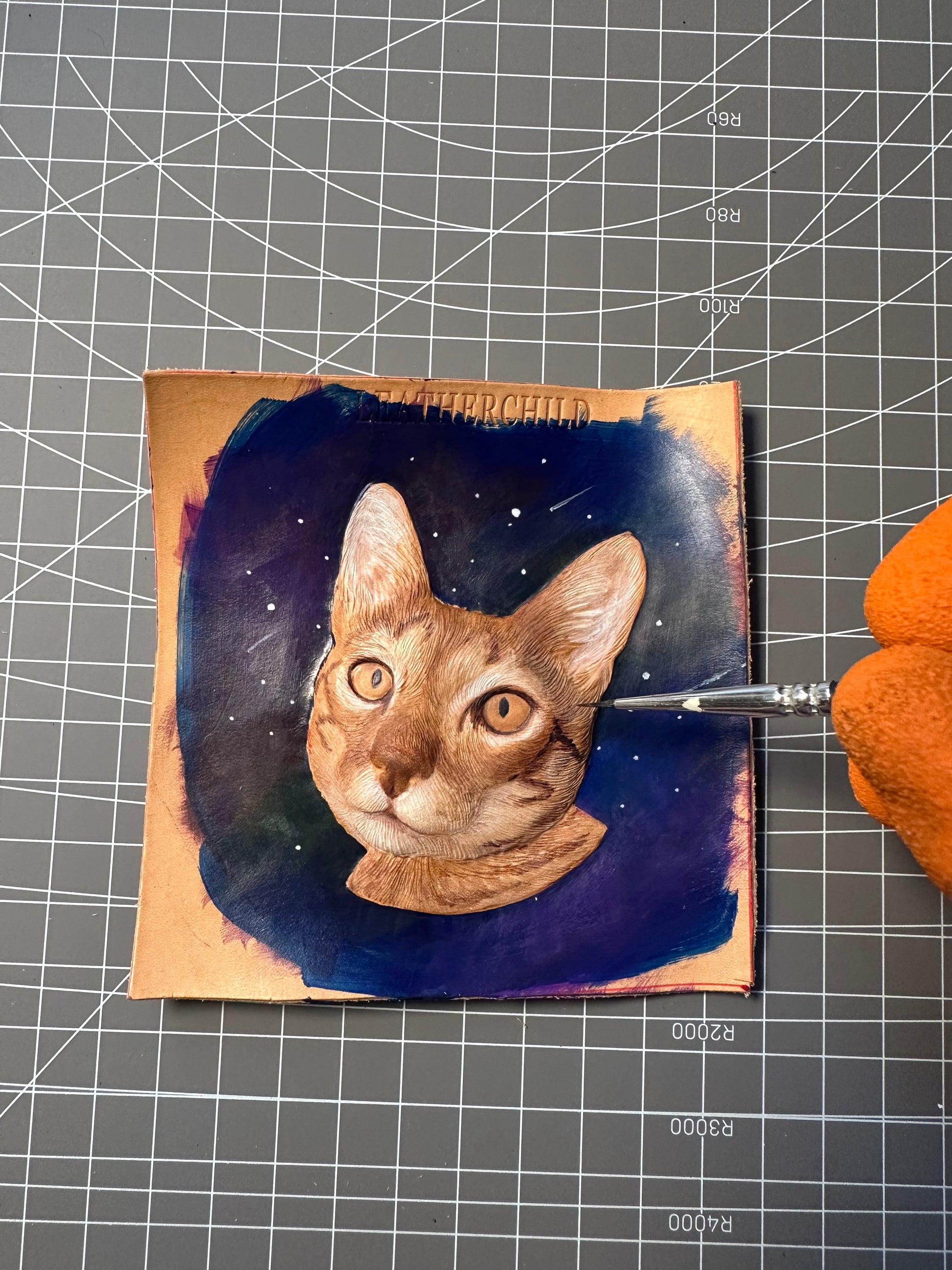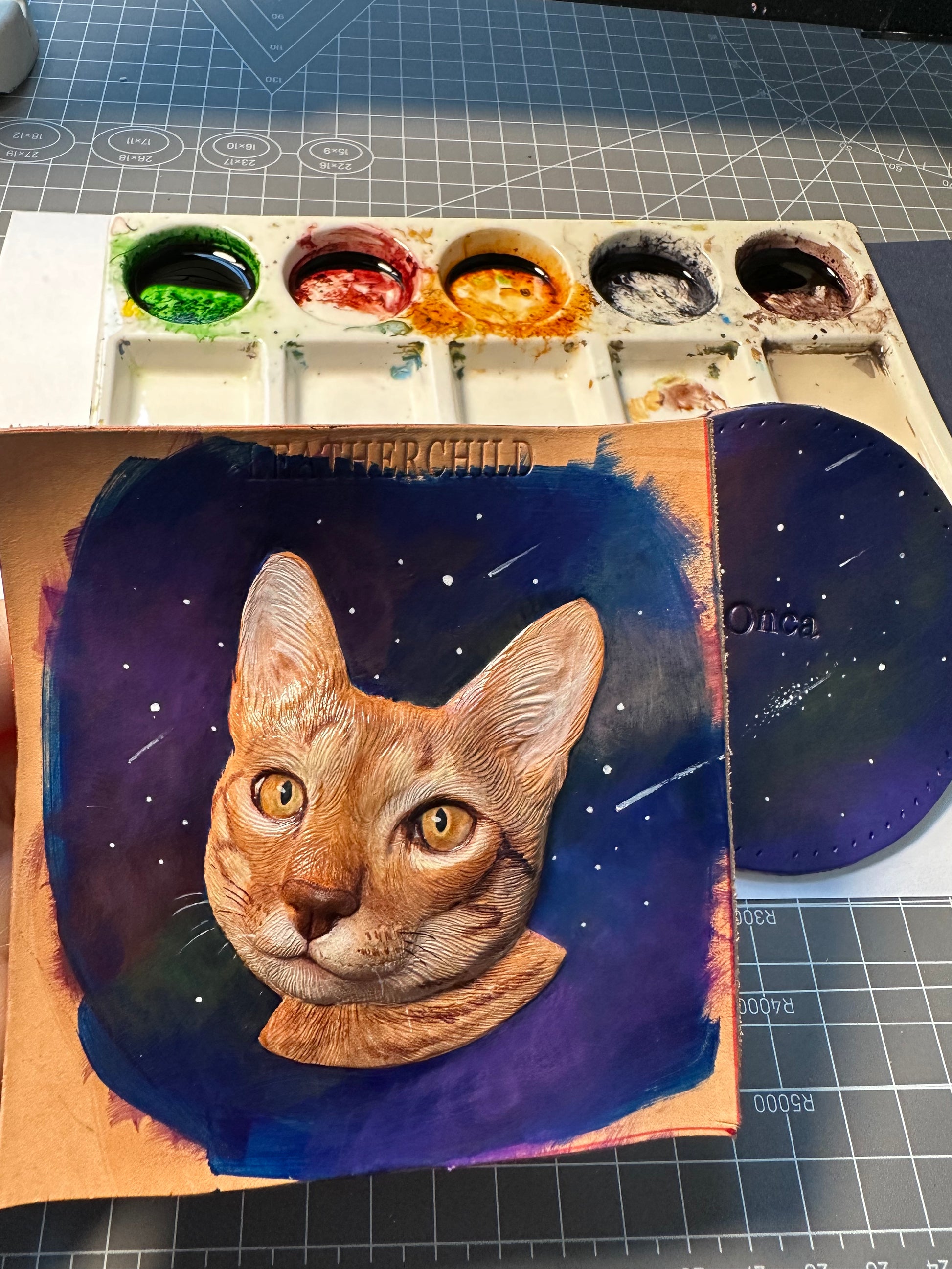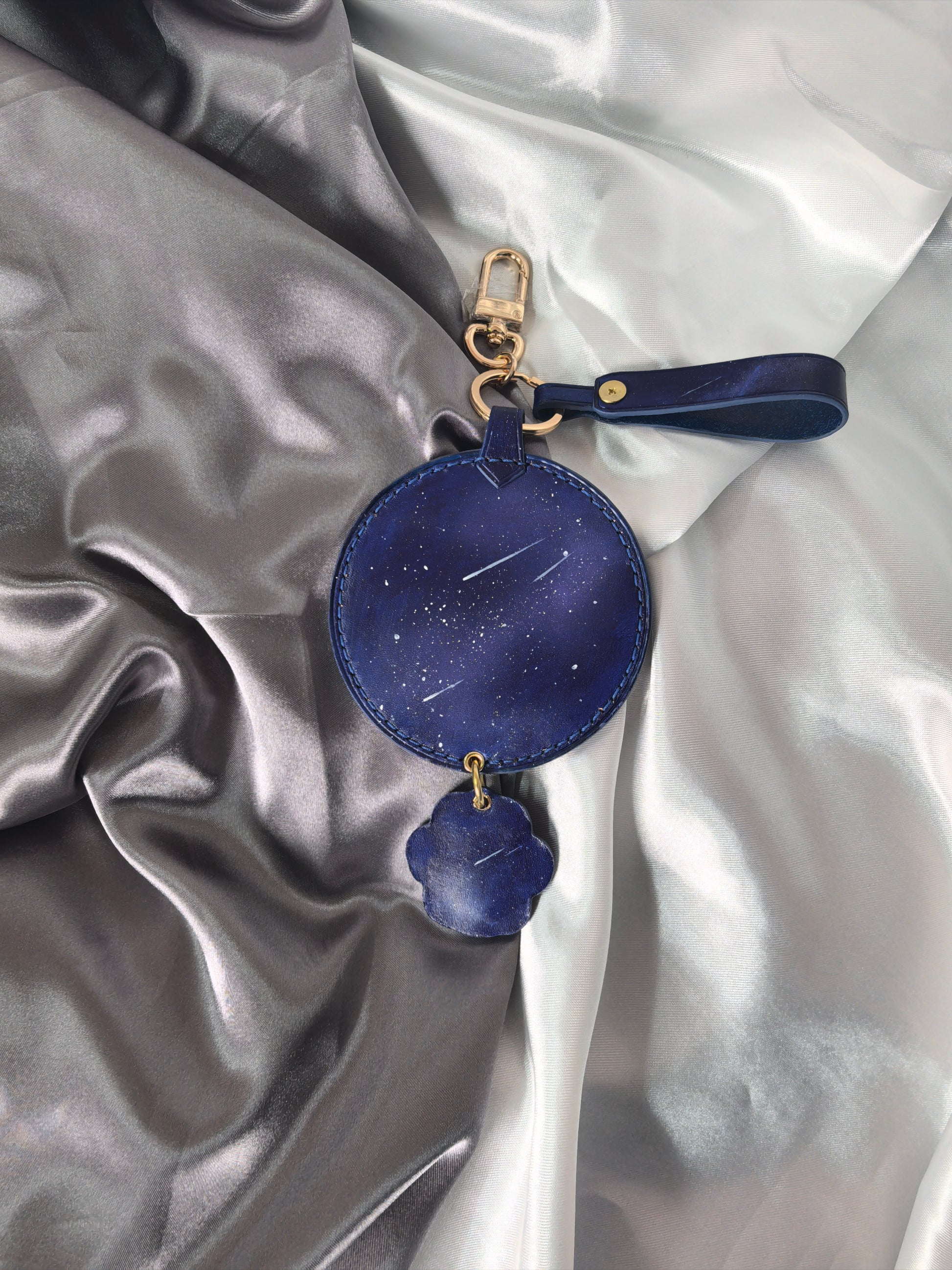 Leatherchild Handcrafted Italian Veg-Tanned Leather Pet Bag Charm & Keychain - Gifts & Decorations | Oil Painting Background (Custom-made 28-35 Days)