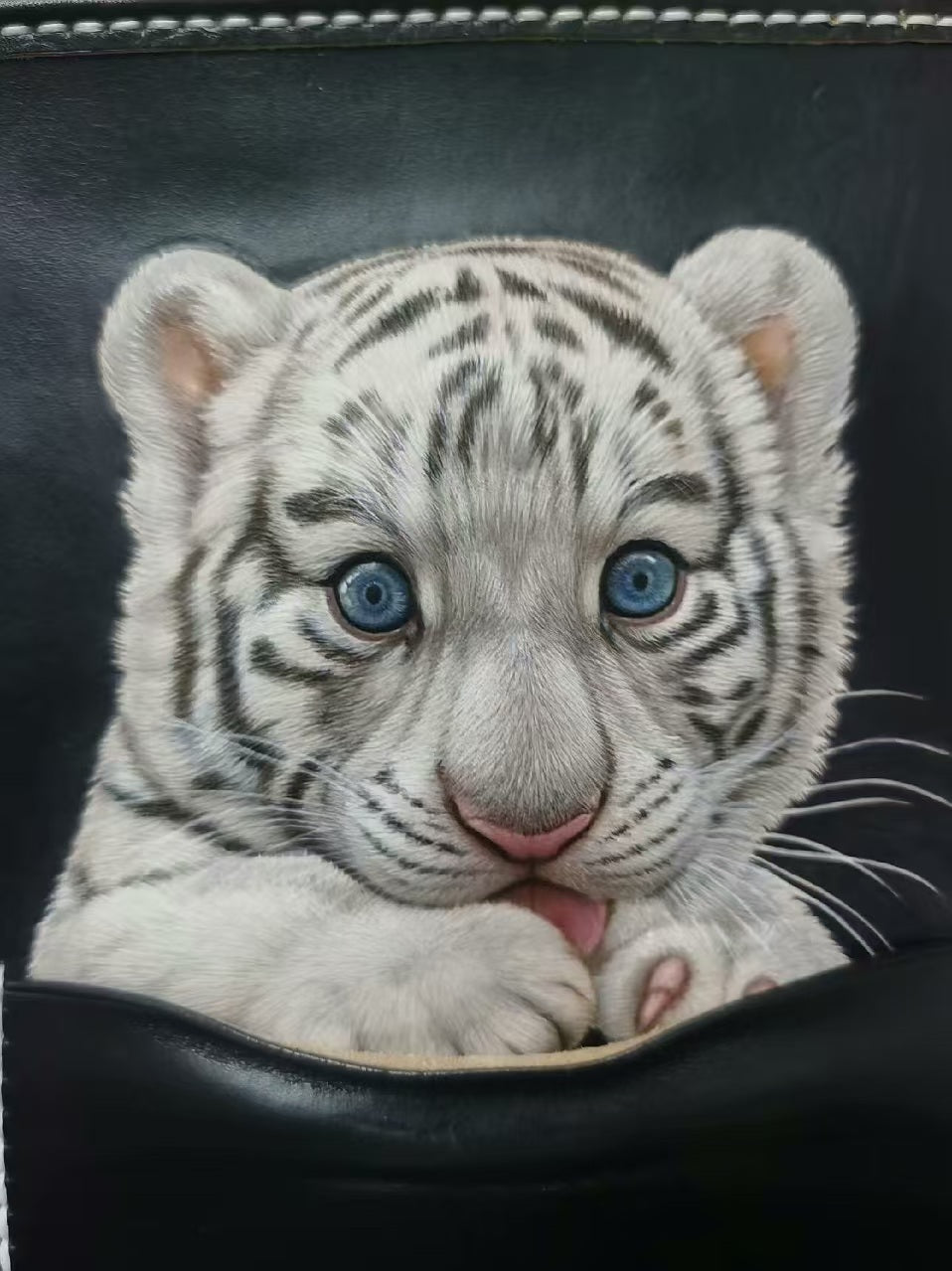 Leatherchild Handmade Hyper-Realistic Carved Leather Pet Bucket bag (Deposit)Artist: Ms.Tao
