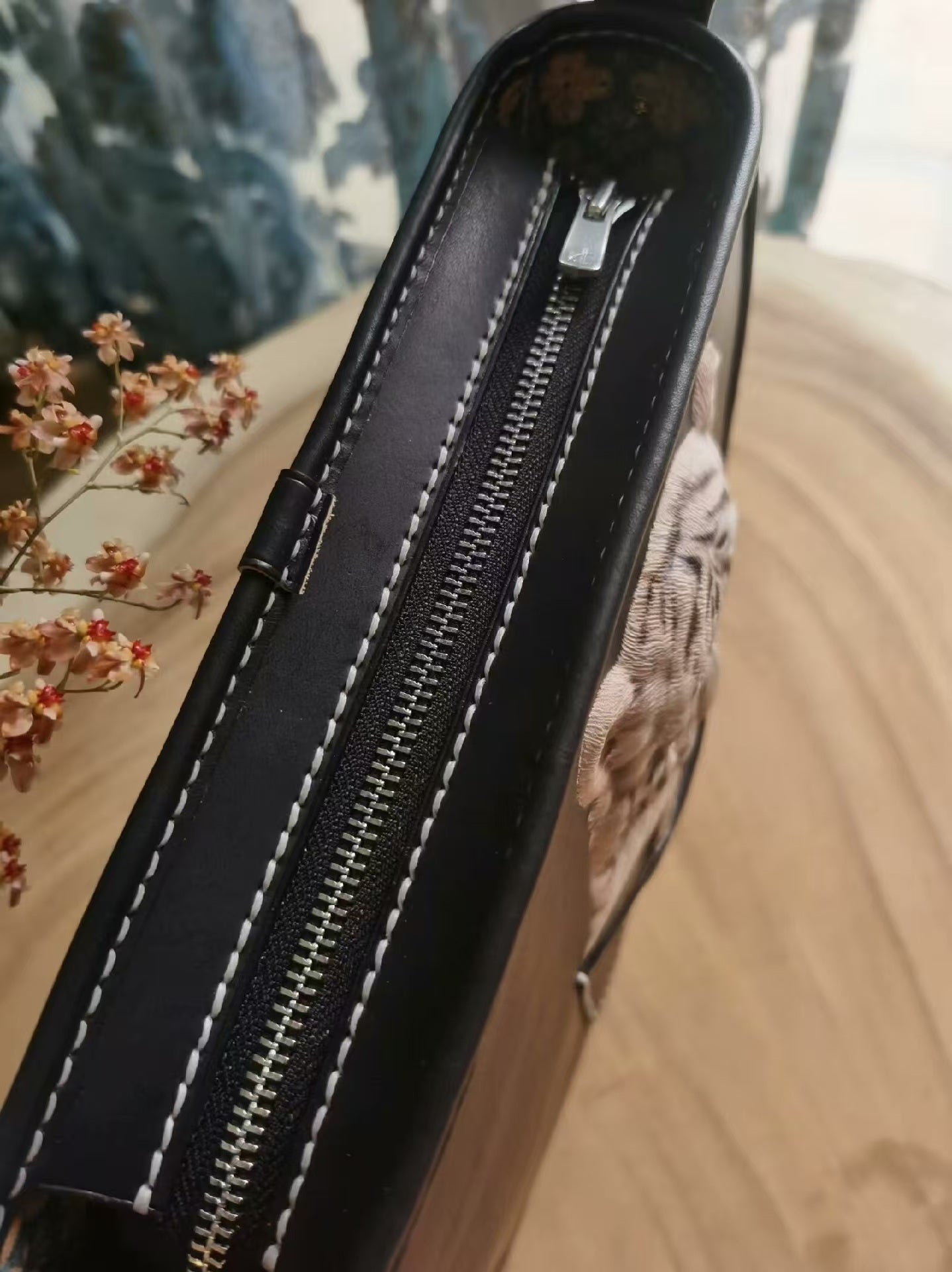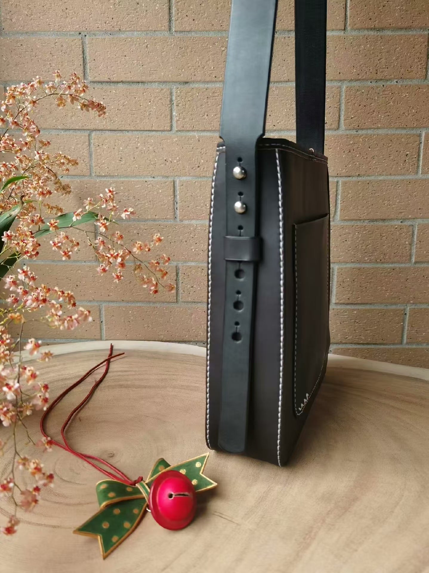 This bag is entirely handmade, involving a detailed process that includes drawing, pattern making, leather cutting, carving, dyeing, hole punching, edge finishing, and stitching. Every step requires substantial time and effort to ensure high-quality craftsmanship and precision.
